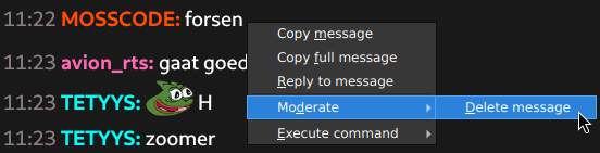 Streamers can now use /prediction, /cancelprediction, /lockprediction, and /completeprediction to manage predictions inside Chatterino.